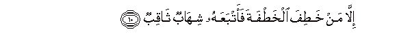 10. Illa man khatifa alkhatfata faatbaAAahu shihabun thaqibun