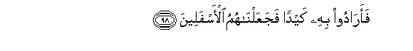 98. Faaradoo bihi kaydan fajaAAalnahumu al-asfaleena