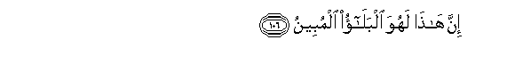 106. Inna hatha lahuwa albalao almubeenu