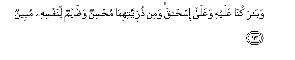113. Wabarakna AAalayhi waAAala ishaqa wamin thurriyyatihima muhsinun wathalimun linafsihi mubeenun