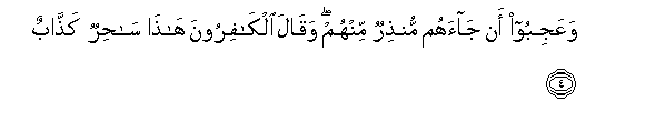 4. WaAAajiboo an jaahum munthirun minhum waqala alkafiroona hatha sahirun kaththabun