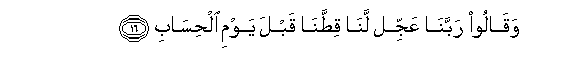 16. Waqaloo rabbana AAajjil lana qittana qabla yawmi alhisabi
