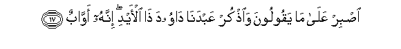 17. Isbir AAala ma yaqooloona waothkur AAabdana dawooda tha al-aydi innahu awwabun