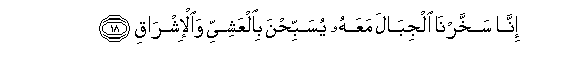 18. Inna sakhkharna aljibala maAAahu yusabbihna bialAAashiyyi waal-ishraqi