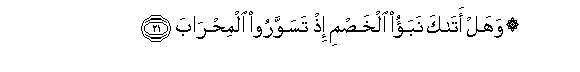 21. Has the Story of the Disputants reached thee? Behold, they climbed over the wall of the private chamber;