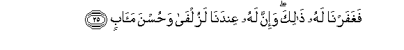 25. So We forgave him this (lapse): he enjoyed, indeed, a Near Approach to Us, and a beautiful place of (Final) Return.