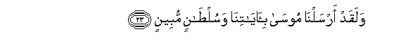 23. Walaqad arsalna moosa bi-ayatina wasultanin mubeenin
