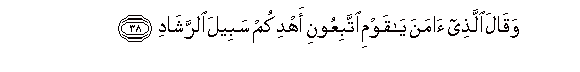 38. Waqala allathee amana ya qawmi ittabiAAooni ahdikum sabeela alrrashadi