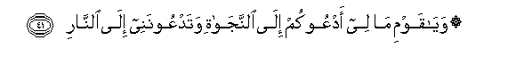 41. "And O my people! How (strange) it is for me to call you to Salvation while ye call me to the Fire!