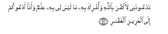 42. TadAAoonanee li-akfura biAllahi waoshrika bihi ma laysa lee bihi AAilmun waana adAAookum ila alAAazeezi alghaffari