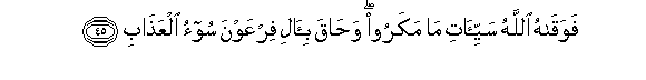 45. Fawaqahu Allahu sayyi-ati ma makaroo wahaqa bi-ali firAAawna soo-o alAAathabi
