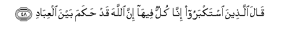 48. Those who had been arrogant will say: "We are all in this (Fire)! Truly, Allah has judged between (his) Servants!"