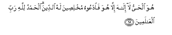 65. He is the Living (One): There is no god but He: Call upon Him, giving Him sincere devotion. Praise be to Allah, Lord of the Worlds!