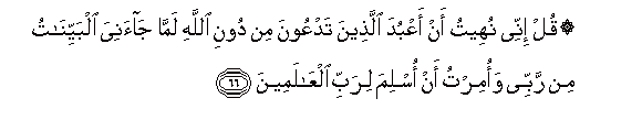 66. Qul innee nuheetu an aAAbuda allatheena tadAAoona min dooni Allahi lamma jaaniya albayyinatu min rabbee waomirtu an oslima lirabbi alAAalameena