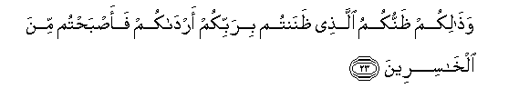 23. "But this thought of yours which ye did entertain concerning your Lord, hath brought you to destruction, and (now) have ye become of those utterly lost!"