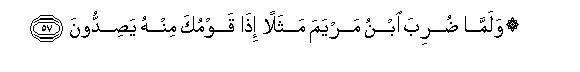 57. Walamma duriba ibnu maryama mathalan itha qawmuka minhu yasiddoona