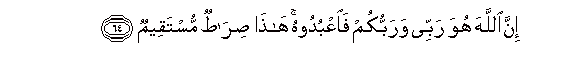 64. Inna Allaha huwa rabbee warabbukum faoAAbudoohu hatha siratun mustaqeemun