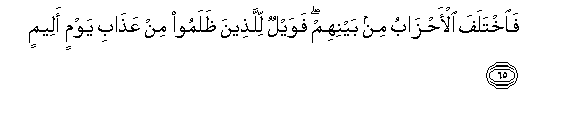 65. Faikhtalafa al-ahzabu min baynihim fawaylun lillatheena thalamoo min AAathabi yawmin aleemin