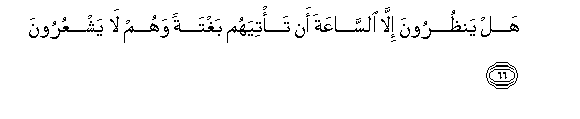 66. Hal yanthuroona illa alssaAAata an ta/tiyahum baghtatan wahum la yashAAuroona