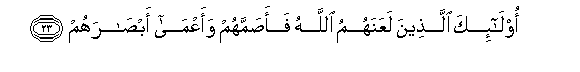 23. Such are the men whom Allah has cursed for He has made them deaf and blinded their sight.