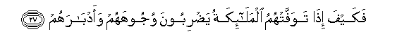 27. Fakayfa itha tawaffat-humu almala-ikatu yadriboona wujoohahum waadbarahum