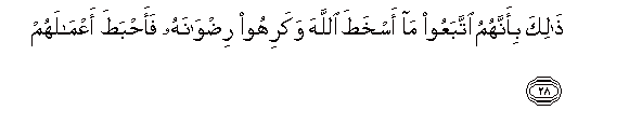 28. Thalika bi-annahumu ittabaAAoo ma askhata Allaha wakarihoo ridwanahu faahbata aAAmalahum
