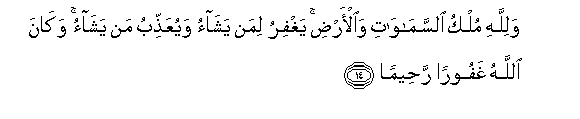 14. Walillahi mulku alssamawati waal-ardi yaghfiru liman yashao wayuAAaththibu man yashao wakana Allahu ghafooran raheeman