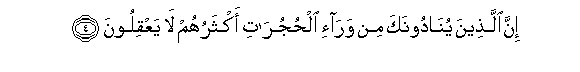 4. Inna allatheena yunadoonaka min wara-i alhujurati aktharuhum la yaAAqiloona