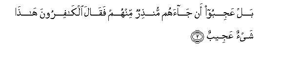 2. Bal AAajiboo an jaahum munthirun minhum faqala alkafiroona hatha shay-on AAajeebun