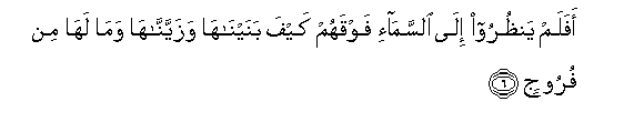 6. Afalam yanthuroo ila alssama-i fawqahum kayfa banaynaha wazayyannaha wama laha min furoojin