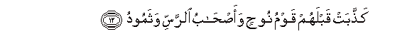 12. Before them was denied (the Hereafter) by the People of Noah, the Companions of the Rass, the Thamud,