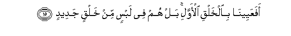 15. AfaAAayeena bialkhalqi al-awwali bal hum fee labsin min khalqin jadeedin