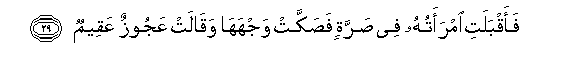 29. Faaqbalati imraatuhu fee sarratin fasakkat wajhaha waqalat AAajoozun AAaqeemun