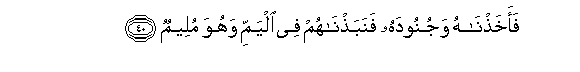 40. Faakhathnahu wajunoodahu fanabathnahum fee alyammi wahuwa muleemun