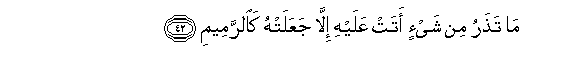 42. Ma tatharu min shay-in atat AAalayhi illa jaAAalat-hu kaalrrameemi
