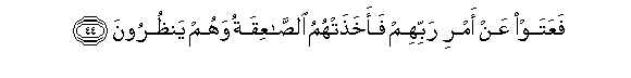 44. FaAAataw AAan amri rabbihim faakhathat-humu alssaAAiqatu wahum yanthuroona