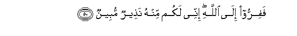 50. Fafirroo ila Allahi innee lakum minhu natheerun mubeenun