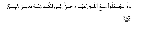 51. Wala tajAAaloo maAAa Allahi ilahan akhara innee lakum minhu natheerun mubeenun