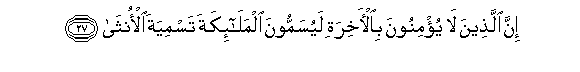 27. Inna allatheena la yu/minoona bial-akhirati layusammoona almala-ikata tasmiyata al-ontha