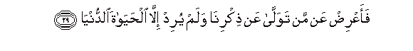 29. FaaAArid AAan man tawalla AAan thikrina walam yurid illa alhayata alddunya