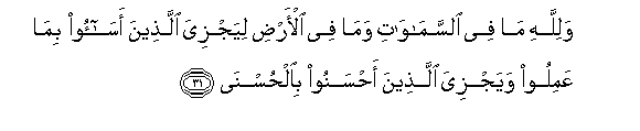 31. Walillahi ma fee alssamawati wama fee al-ardi liyajziya allatheena asaoo bima AAamiloo wayajziya allatheena ahsanoo bialhusna