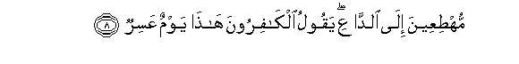 8. Hastening, with eyes transfixed, towards the Caller!- "Hard is this Day!", the Unbelievers will say.