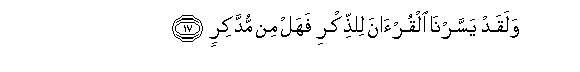 17. Walaqad yassarna alqur-ana lilththikri fahal min muddakirin
