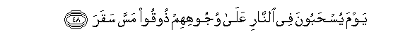 48. Yawma yushaboona fee alnnari AAala wujoohihim thooqoo massa saqara