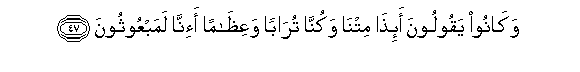 47. Wakanoo yaqooloona a-itha mitna wakunna turaban waAAithaman a-inna lamabAAoothoona