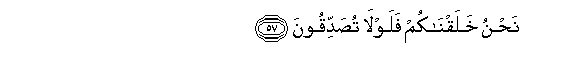 57. Nahnu khalaqnakum falawla tusaddiqoona