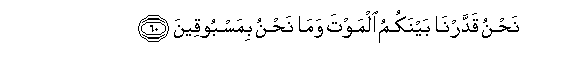 60. Nahnu qaddarna baynakumu almawta wama nahnu bimasbooqeena