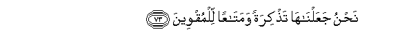 73. Nahnu jaAAalnaha tathkiratan wamataAAan lilmuqweena