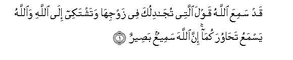 1. Qad samiAAa Allahu qawla allatee tujadiluka fee zawjiha watashtakee ila Allahi waAllahu yasmaAAu tahawurakuma inna Allaha sameeAAun baseerun