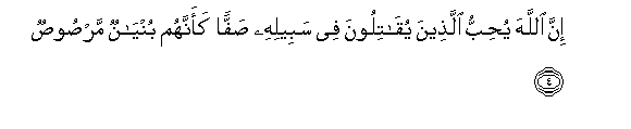 4. Inna Allaha yuhibbu allatheena yuqatiloona fee sabeelihi saffan kaannahum bunyanun marsoosun